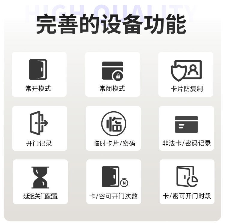 赣州这款智能门锁提供室内门锁和防盗门锁两种选择,其中室内门锁尺寸为 2806521mm,适配 5050 锁体;防盗门锁尺寸为 3657021mm,适配 6068 锁体,可满足不同场景的安装需求。它采用铝合金一体成型搭配钢化玻璃面板打造,兼具坚固耐用的品质与简洁美观的视觉效果。门锁支持蓝牙无线通讯,解锁方式丰富多样,密码、卡片、蓝牙、钥匙四种方式随心选择,满足不同使用习惯与应急需求。其工作温度范围为 - 20~70℃,能适应多数地区的气候条件,采用碱性电池供电,安装更换便捷,是兼具安全性与实用性的门锁选择。